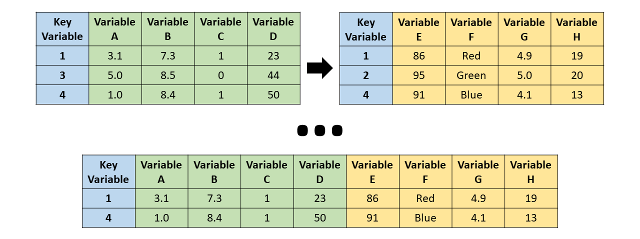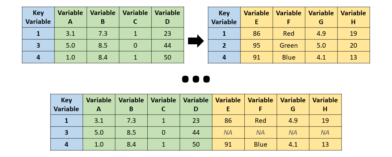 left_join() - the resulting table always has the same key_values as the “left” table