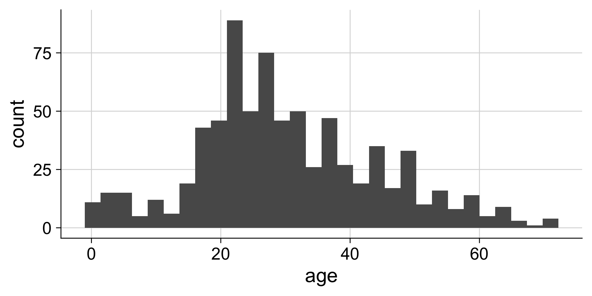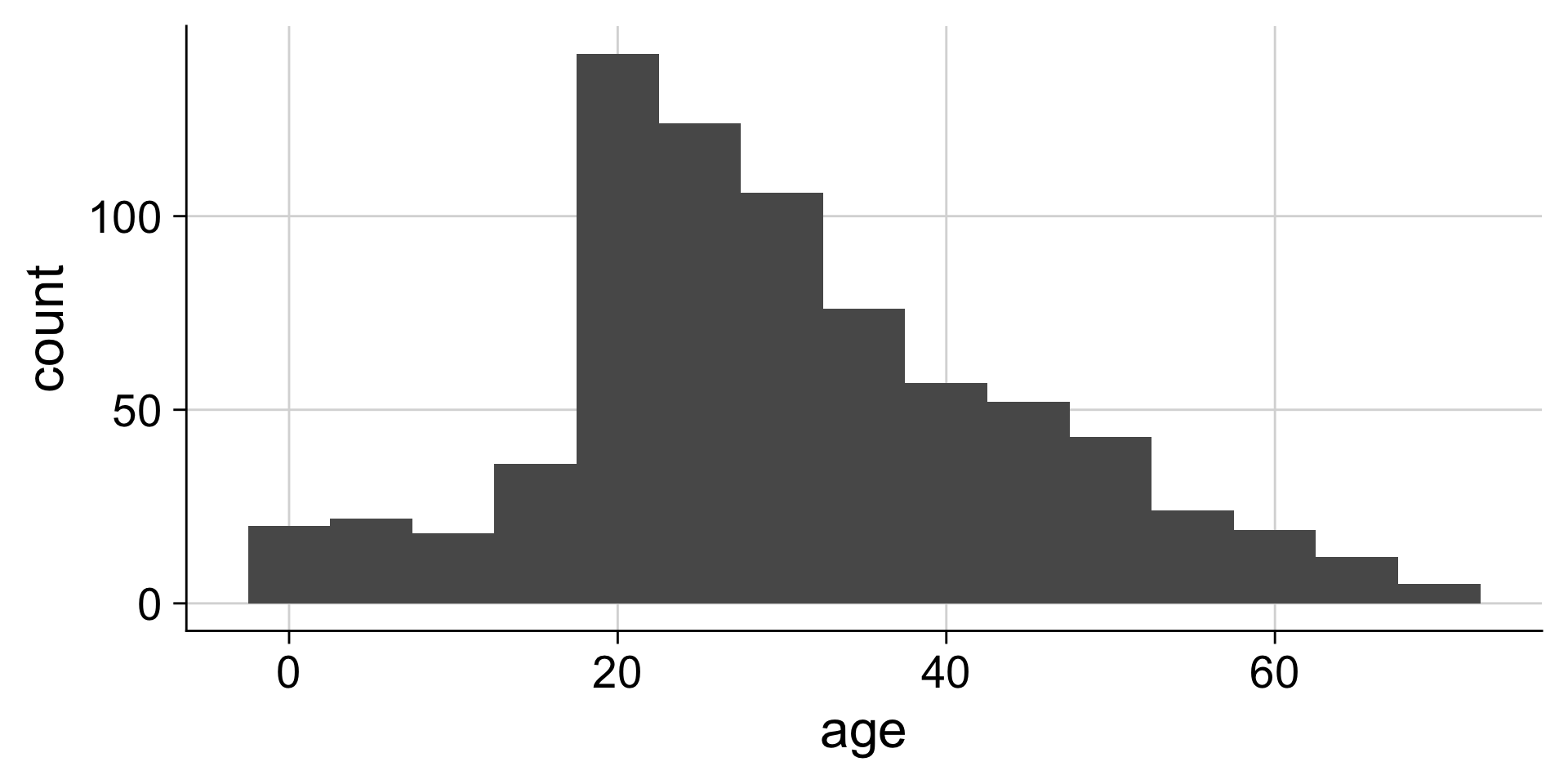 geom_histogram()Do you like where there bins are? What does the first bin say?