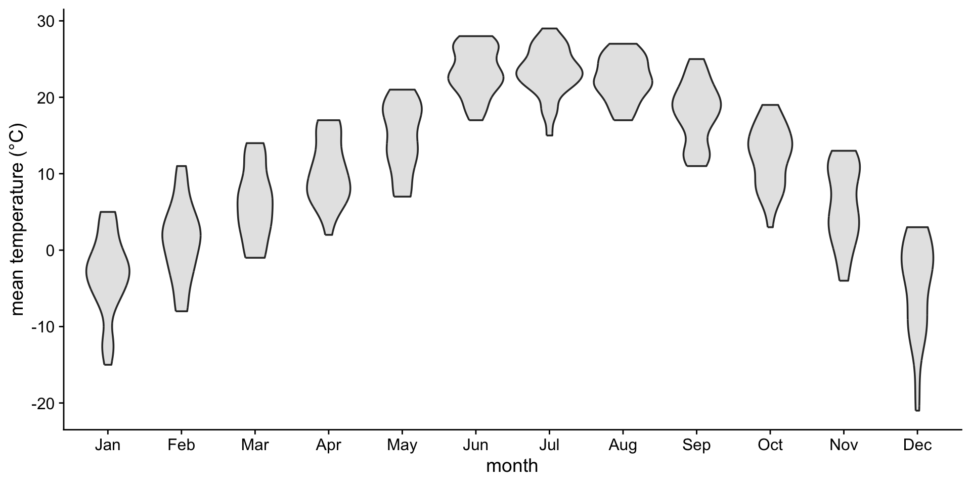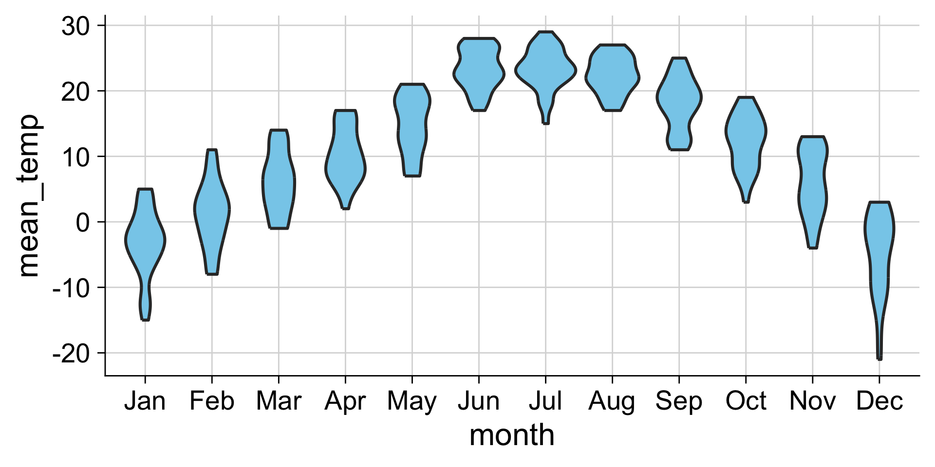 | violin plot | geom_violin() |
