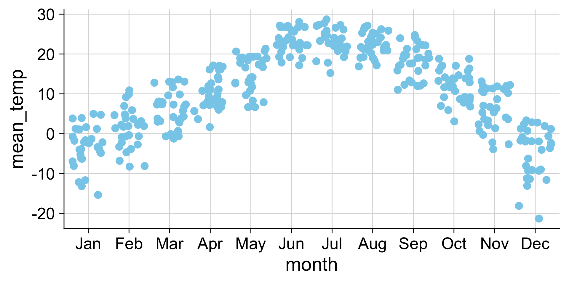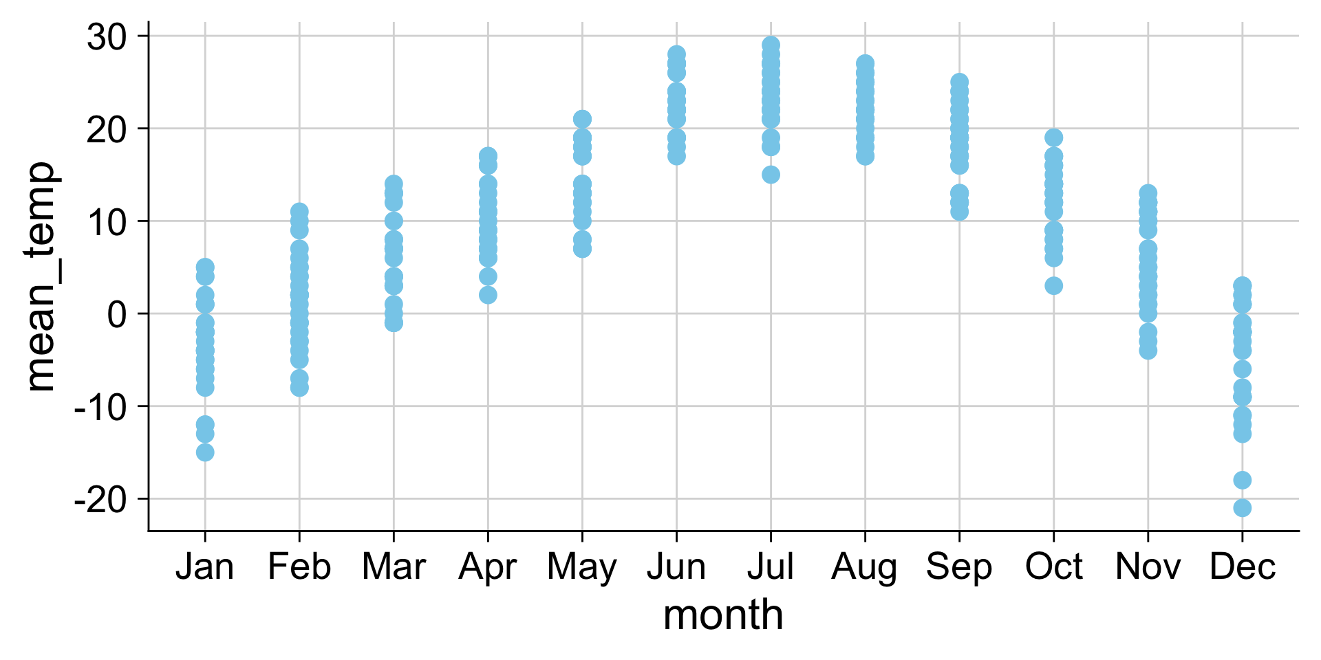 | strip chart | geom_point() |